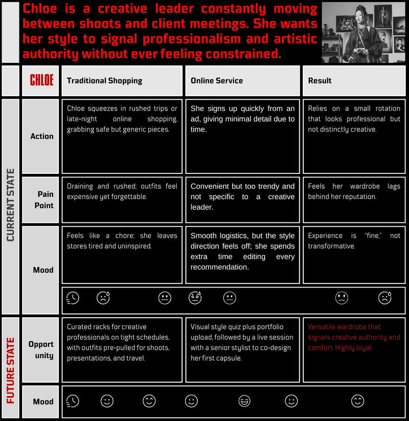 Traditional styling is inaccessible. Tech-focused services rely too heavily on algorithms that genericize results—the antithesis of alt-fashion. 3RD IRIS tackles the paradox that individuality exists within unity. We are creating truly personalized alt-fashion styling while maintaining affordability, efficiency, and scalability.